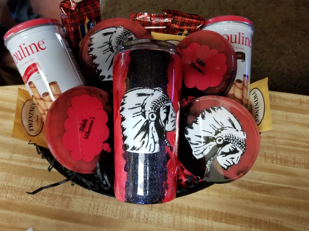 Tumblers,coasters, gift baskets, and much more.